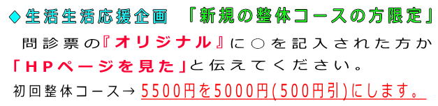 ※重要⇒お手数ですが、マスクをお持ちの方はマスク持参でお願いします。施術中はマスクをしたまま行いますので。(施術者はマスク着用)