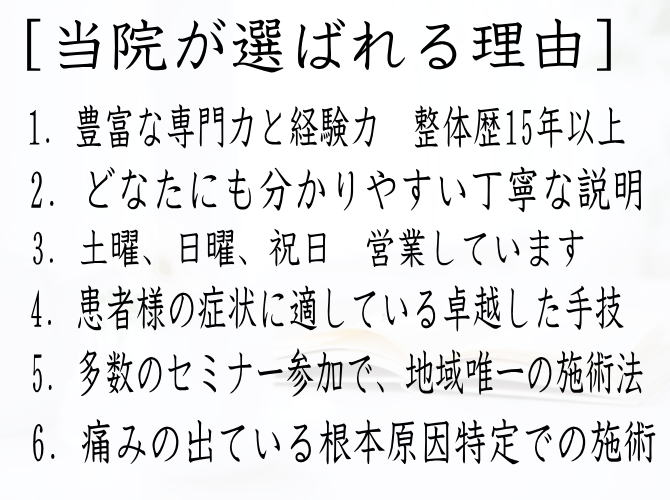 だから、どこの○○院にいっても手技が同じだと思い、山形市内で集客のある建物やその周辺にある○○院が近くて便利だということで、よくいかれる方が多いですが勘違いしない様にしてくださいね。